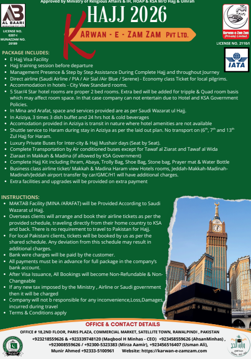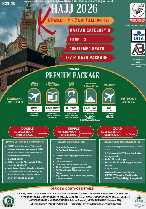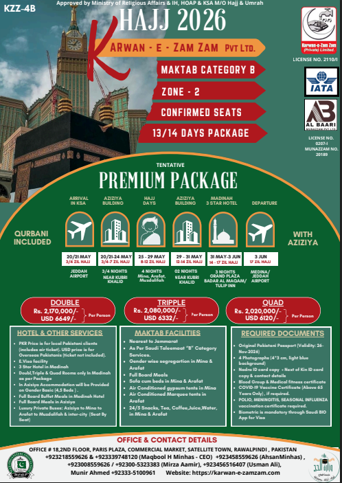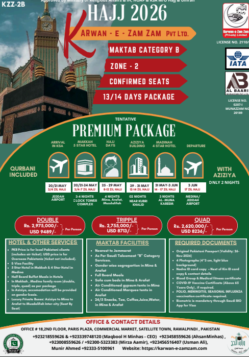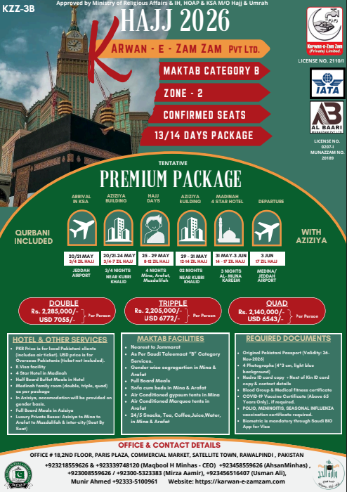 2025 HAJJ PACKAGES FOR PAKISTAN (MAKTAB B)